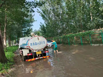 近期,北京市多地出現暴雨天氣,連續多次的持續強降雨造成北臧村鎮一些路段不同程度留存積水、鎮域內少數低洼路段積水較深,嚴重影響來往車輛行車安全。個別區域因雨水沖刷導致路面淤泥大量堆積,地面濕滑泥濘極易發生交通事故。